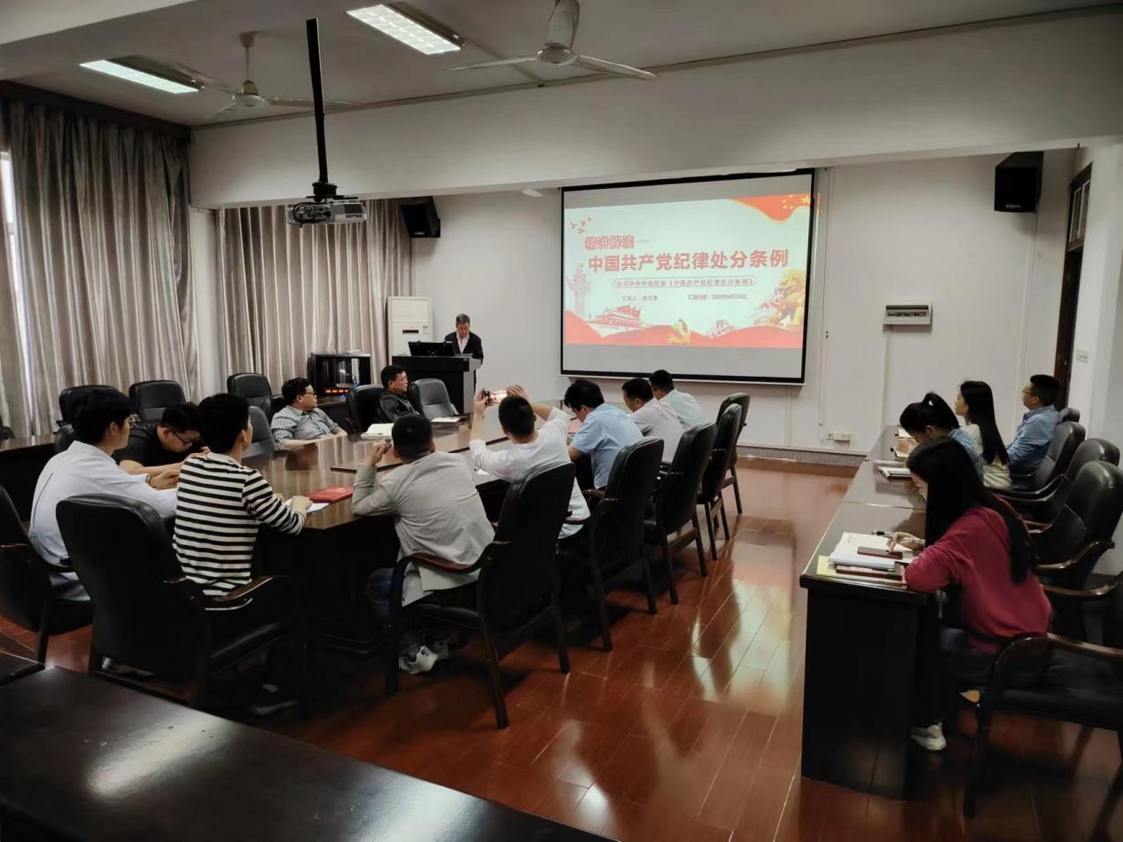 4月18日下午,公司党委召开党纪学习教育部署大会暨党纪学习教育第一堂党课,党委书记周文革主持会议并讲党课,全体党委委员、院领导班子、各党支部书记及党员代表参会。