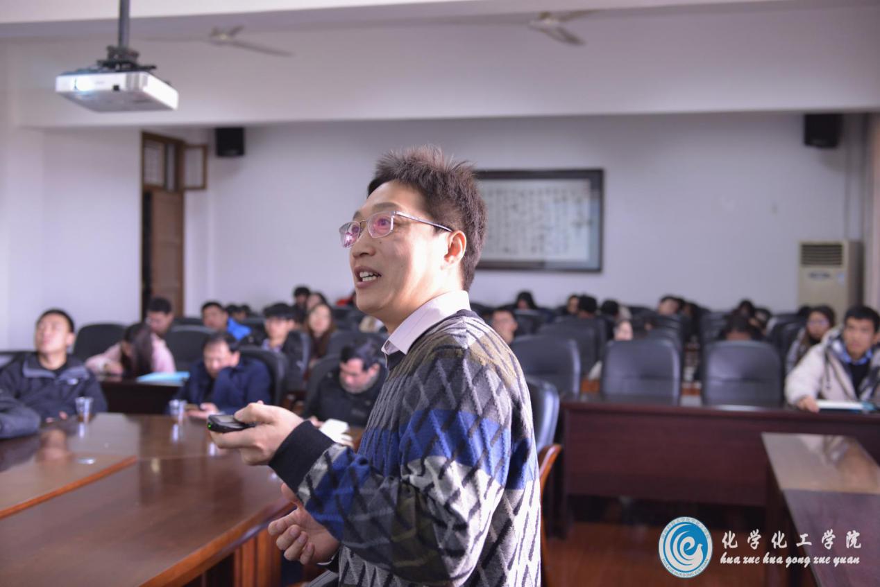 片刻休息后,张龙副研究员针对"仿生伯胺催化体系的研究"展开系列讲解。他对该系统研究的伯胺体系催化过程的详细机理及选择性规律和影响该手性控制的因素进行详细介绍,并阐明了转胺化机制中邻、对醌催化剂的异同及邻醌催化剂的优势所在。报告尾声,参会员工联系自身实验研究,向张研究员请教并得到耐心解答。