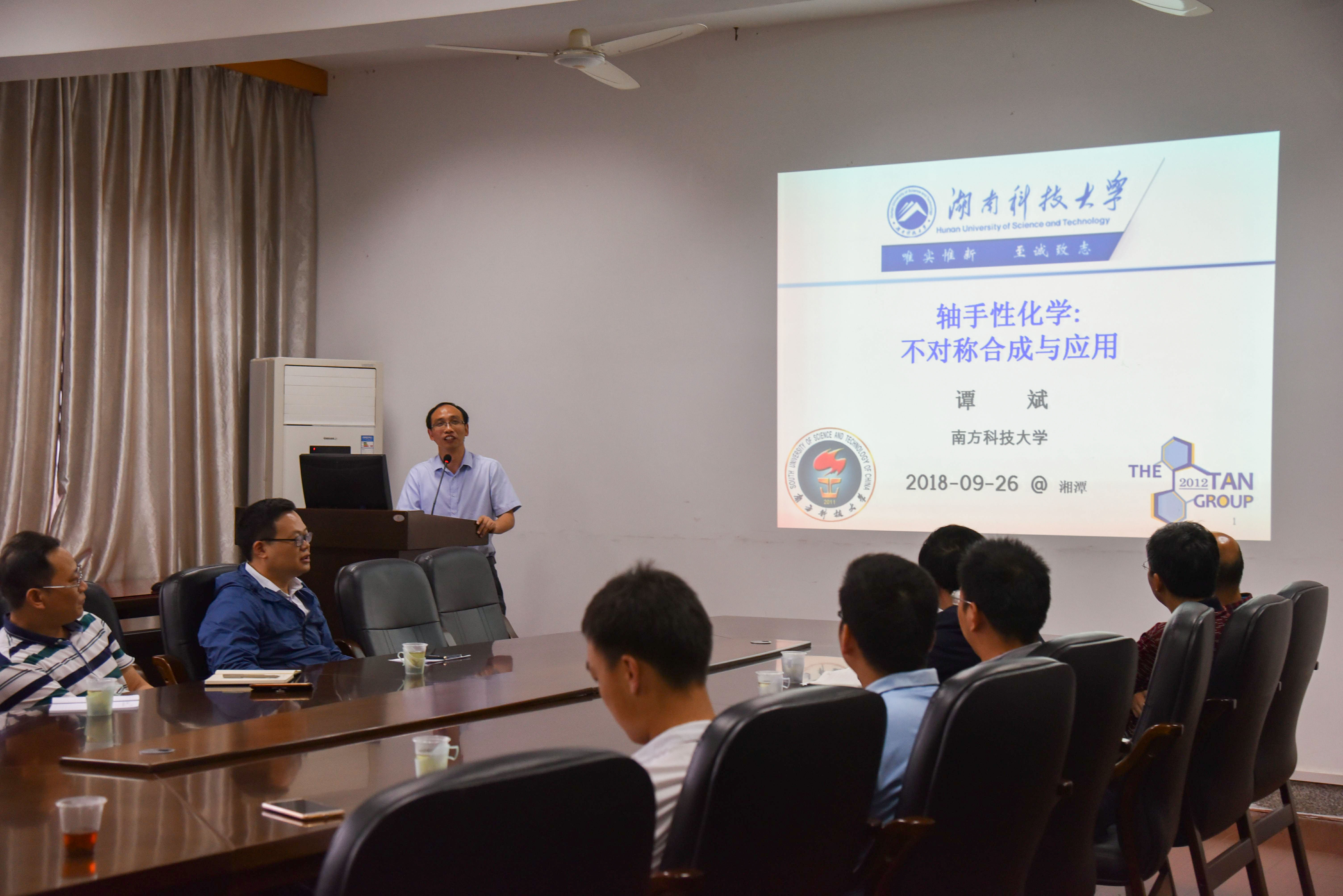 2018年9月26日下午,应304永利集团和理论有机化学与功能分子教育部重点实验室的邀请,国家杰出青年基金获得者谭斌教授在化工楼三楼学术报告厅以“轴手性化学:不对称合成与应用”为主题,做了一场精彩的学术报告。304永利集团师生、理论有机化学与功能分子教育部重点实验室科研人员等到场聆听。此次报告会由公司周虎书记主持。