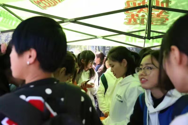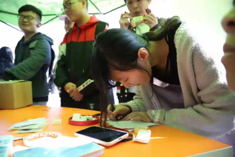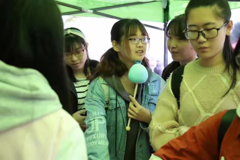 大家都在午饭时刻相聚在明湖广场我们的活动比预定时间超出许多那还不是因为我们的游戏太好玩,奖品很丰厚,零食巨好吃嘛。没想到来玩游戏的各位同学都对我们的道具眼冒小星星呢    大家排队排的我们的小棚子都装不下啦 今年没有玩嗨的小伙伴不要气馁哦(´-ω-`)我们可以期待下学期的活动哟,活动多多,惊喜满满。