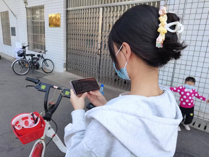 员工在核酸采集现场通过手机观看大会直播