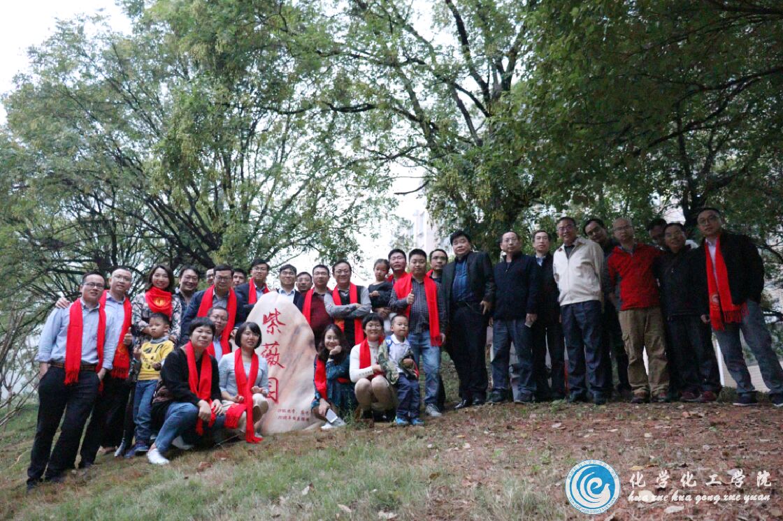七、11月3日下午5:30,01级化学和应化专业的员工在化工楼前坪进行紫薇园剪彩仪式,大家合影留念,场面温馨。