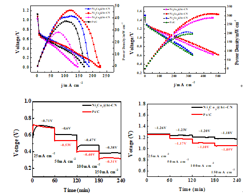 近日,304永利集团易清风教授研究团队报道了一种空心管状纳米复合材料的合成,实现了其作为阴极催化剂用于碱性和中性锌-空气电池的研究。以双氰胺作为氮源,蔗糖作为碳源,金属镍和钴作为纳米管生长催化中心,合成了一种管径小至6-11nm的空心纳米管复合催化剂。经测试,催化剂在碱性和中性电解液中对氧还原具有优异的电催化活性,连续循环5000圈其电流密度几乎不变。其高活性原因可归属于:纳米管结构本身巨大的表面积,良好的导电性;氮与过渡金属的高亲和力,促进了氮掺杂碳和金属氧化物之间更强的耦合效应,大大加速了催化剂表面和反应中间体之间的界面电子转移;高温下形成金属-N结构,形成更多的缺陷部位,提供较多活性位点。此外,以锌片作为阳极,同时将制备的催化剂负载在碳纸上作为空气电极(阴极),在氢氧化钾和硝酸钾溶液中分别组装了碱性和中性锌-空气电池,测试结果显示出接近或优于以商品Pt/C为阴极催化剂的放电性能。这项研究为制备碳氮复合物纳米管材料,并将其作为优异的阴极催化剂应用于碱性和中性锌-空气电池提供了新的策略。