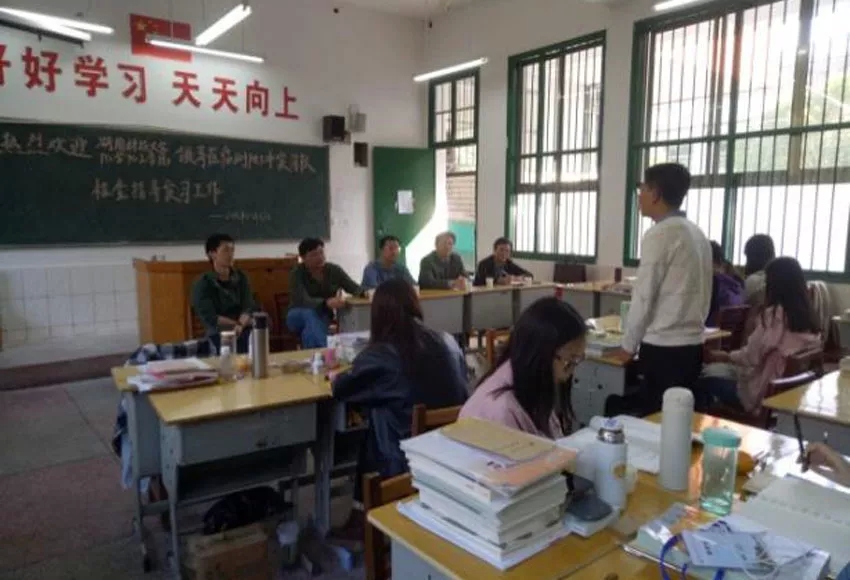 听自己指导老师课,听其他同学的指导老师课,在听课过程中,感受课堂教学常规。从编写教案、修改教案、试讲、磨课、再试讲,一次一次的发现问题、修改问题,实习老师们在带队老师和化学指导老师指导下最终走向讲台。课后,指导老师都会就课堂教学中存在的问题进行面对面指导。通过这样的活动,让实习老师们懂得如何真正雕琢、真正精致自己的课堂。