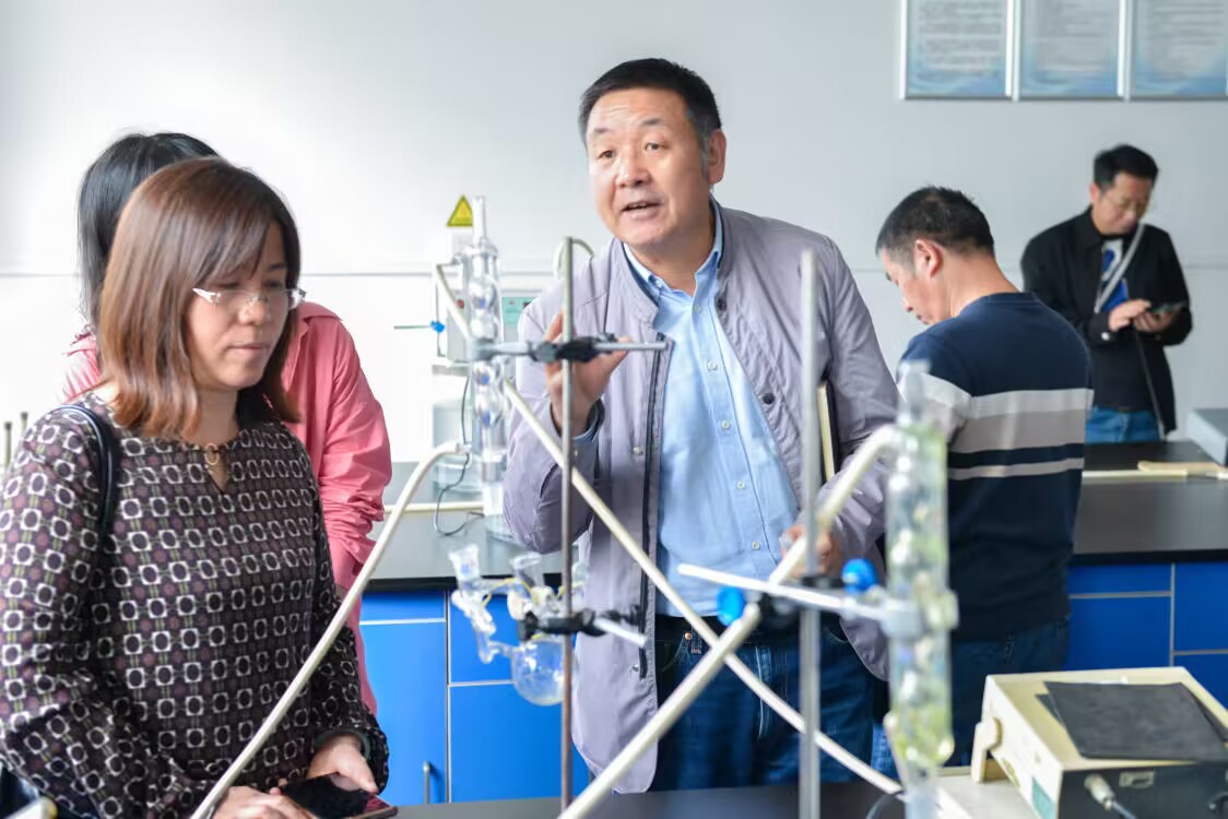 双方团队就深化合作进行广泛且深入的交流探讨。随后,醴陵市一中化学教师参观了公司各实验室,双方教师在实验室互相交流学习,碰撞思想的火花,同时理解了实践教学对员工化学素养提升的重要性。