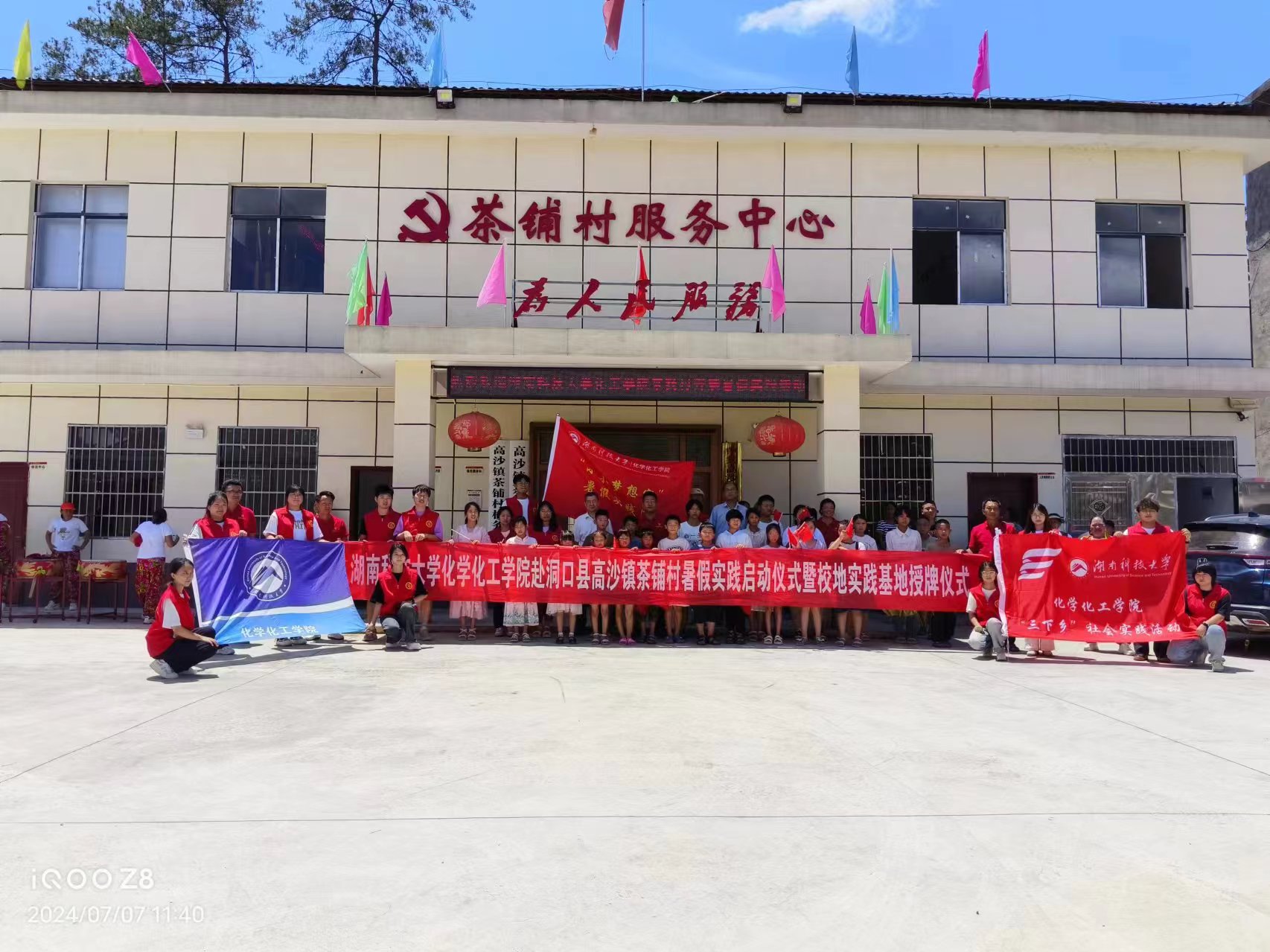 7月7日中午,304永利集团暑假实践启动仪式暨校地合作实践基地授牌仪式在邵阳市洞口县高沙镇茶铺村党员活动室成功举办。洞口县高沙镇党委副书记曾军、公司党委书记周文革、茶铺村党总支书记罗君及村委会干部、科技小院指导老师薛建荣、“小小梦想家”实践团指导老师王彪出席本次仪式。