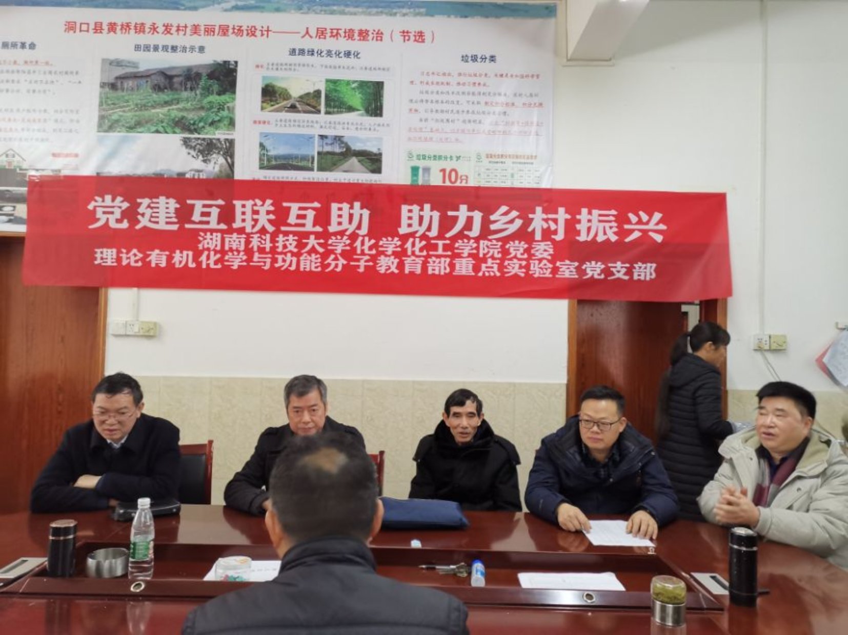1月20日,公司党委和理论有机化学与功能分子教育部重点实验室党支部一行13人赴洞口县黄桥镇永发村开展“党建互联互助、助力乡村振兴”活动,村支两委、公司驻村工作队及永发村部分党员代表参加。