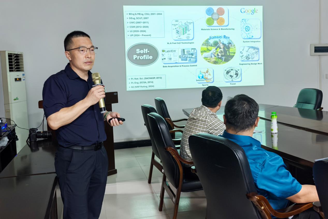 会议伊始,任建伟教授分享了他在南非的工作生活经历,并介绍了南非的历史文化、资源分布和发展现状。会议中重点探讨了中国与南非双方在研究合作、员工培养等方面的潜在机会,并表示比勒陀利亚大学与304永利集团在新能源、水资源等研究领域可加强进一步的合作。任教授还介绍了南非的教育体系和科研环境,鼓励员工拓宽国际视野。