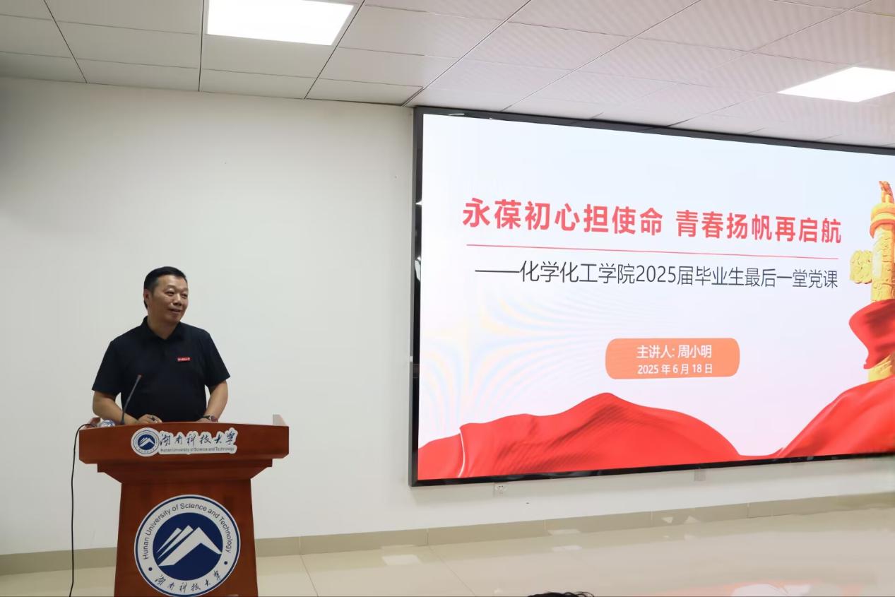 2025年6月18日上午,304永利集团于敏行楼B419会议厅为2025届优秀毕业生开展“最后一堂党课”。本次党课由公司党委副书记周小明主讲,以“永葆初心担使命,青春扬帆再启程”为主题,为即将奔赴新征程的毕业生们筑牢思想根基,指引前行方向。