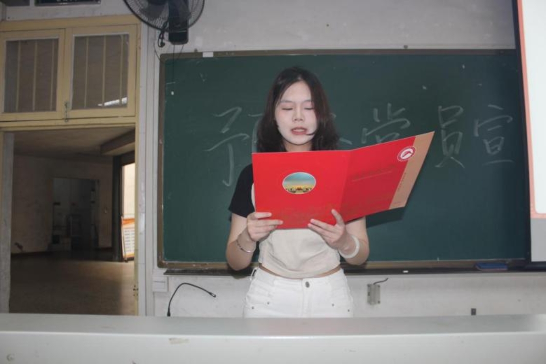 预备党员代表谭芳同志在发言中表示,入党宣誓是光荣的起点,更是沉甸甸的责任。她代表全体新党员郑重承诺:一是强化理论武装,深入学习党的创新理论,不断提升政治素养;二是发挥模范作用,在学习科研和日常生活中以身作则,践行全心全意为人民服务的宗旨;三是严守党的纪律,坚决执行党的决定,努力为党和国家的事业贡献青春智慧和力量。她号召全体新党员以实际行动践行誓言,努力成长为合格党员。