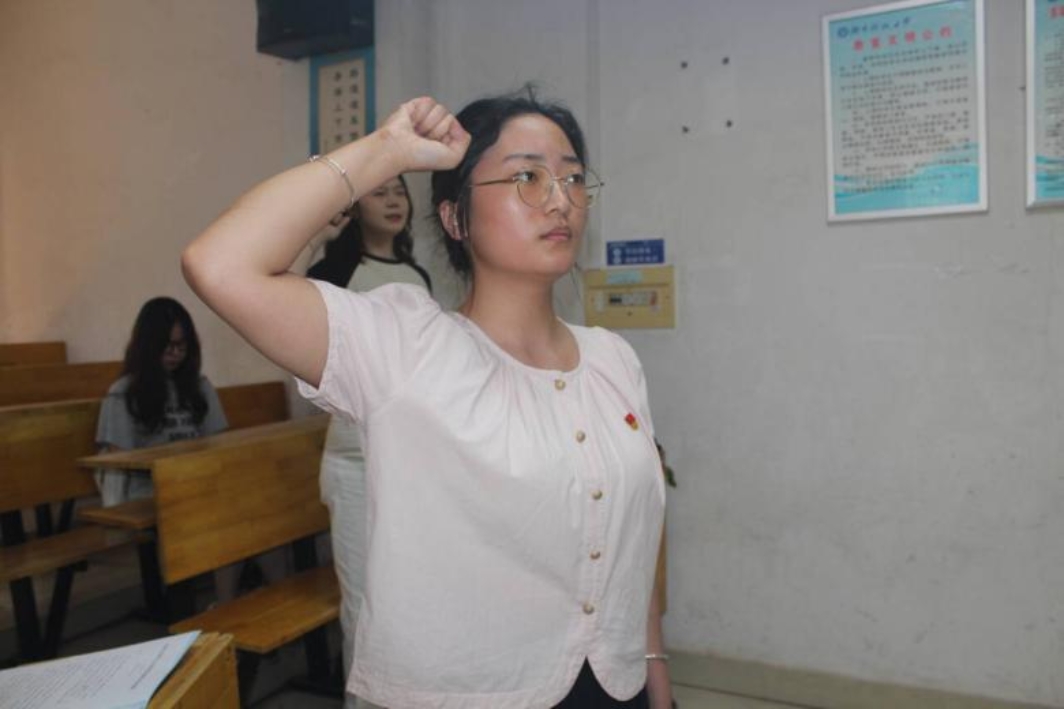 在正式党员代表赵孟然同志的带领下,全体预备党员面向鲜红党旗,紧握右拳,庄严宣誓:“我志愿加入中国共产党……”。铿锵有力的誓言响彻会场,表达了新党员对党的无限忠诚和为共产主义奋斗终身的坚定信念。