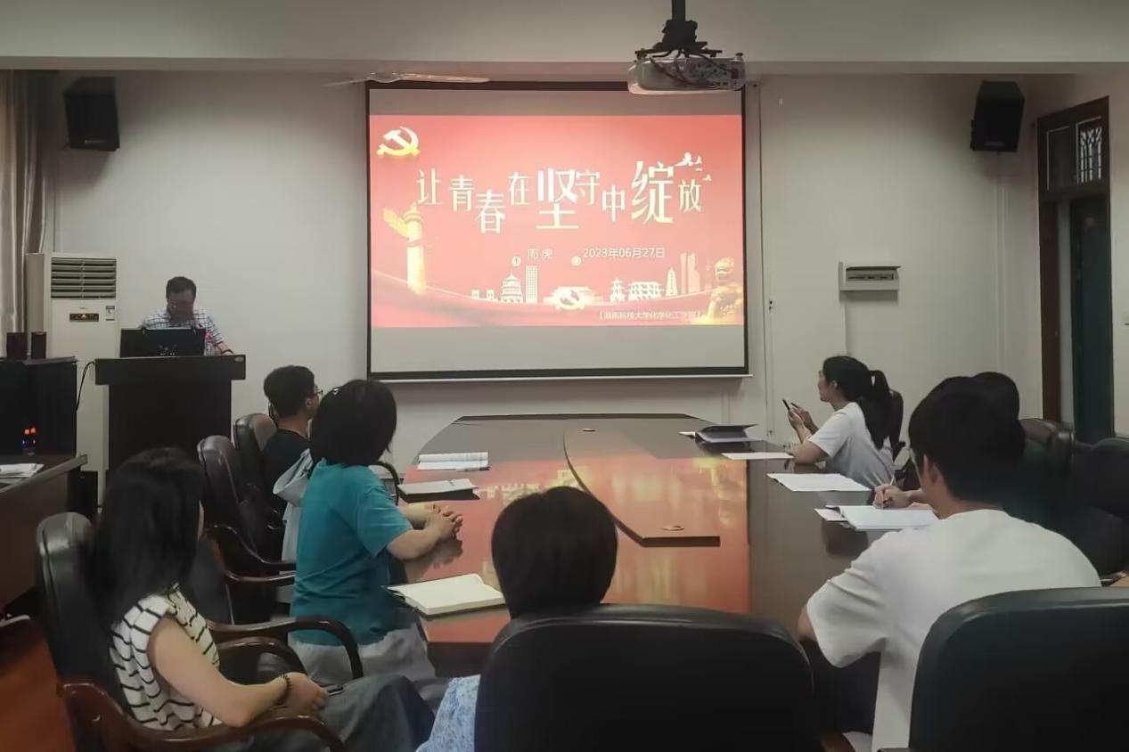 6月27日上午,304永利集团在化工楼310开展“让青春在坚守中绽放”主题党课。本次党课由304永利集团经理周虎主讲,教师党员和员工党员到场观摩学习。