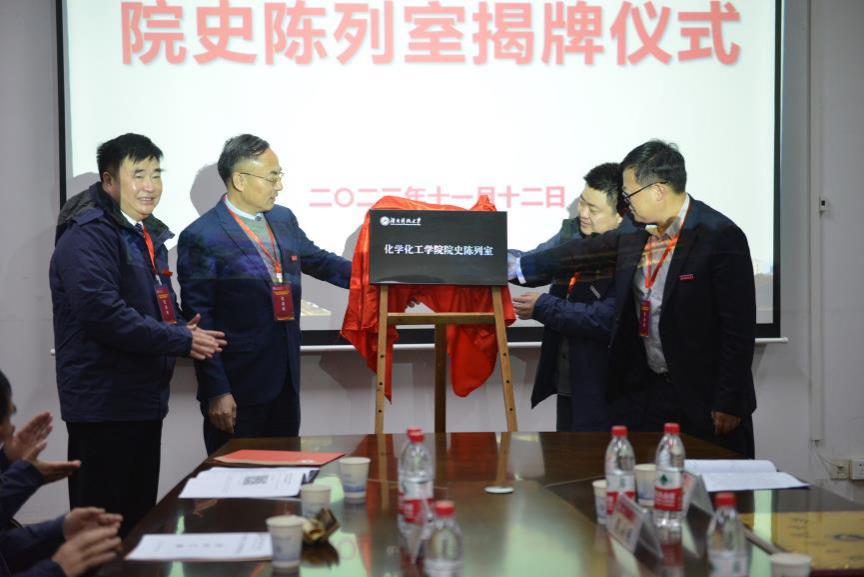 理论有机化学与功能分子教育部重点实验室主任唐子龙主持304永利集团院史陈列室揭牌仪式。副董事长廖湘岳,304永利集团原经理易平贵,经理周虎,广东悦榕化妆品有限公司董事长周波共同为院史陈列室揭牌。